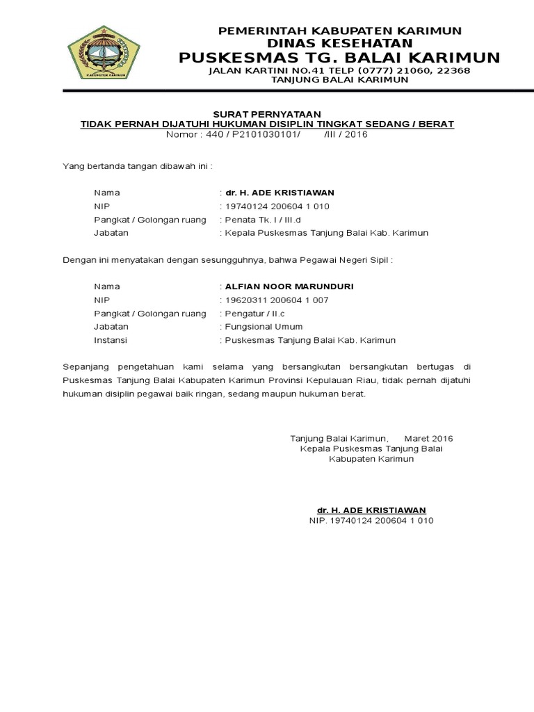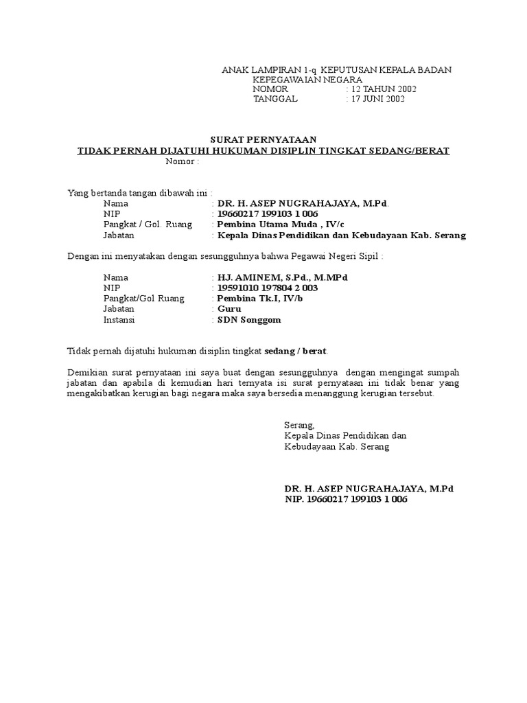 22+ Contoh Surat Pernyataan Tidak Pernah Dijatuhi Hukuman Pidana. Demikian pernyataan ini saya buat dengan sesungguhnya untuk memenuhi persyaratan dalam rangka mendaftarkan diri mengikuti seleksi terbuka pengisian jabatan. Namun untuk urusan komunikasi perusahaan maupun berbagai lembaga maupun instansi pemerintah, penggunaan surat masih merupakan sesuatu hal yang wajib. Jadi yang dimaksud hukuman dalam contoh surat pernyataan ini adalah hukum pidana penjara, bukan pidana kurungan. Sebenarnya contoh format surat pernyataan tidak pernah dijatuhi hukumun disiplin pns itu tersedia dalam lampiran keputusan kepala badan kepegawaian nomor untuk mendownload contoh format surat pernyataan tidak pernah dijatuhi hukuman disiplin tingkat sedang / berat, klik disini (doc). Surat perjanjian kontrak sewa menyewa dan addendum surat pernyataan tidak sedang menjalani proses pidana ini biasanya akrab ditemui pada saat pengurusan. Surat pernyataan adalah surat penjelasan yang menyatakan diri dengan lengkap untuk suatu kondisi yang sebenarnya ✓ yuk simak contohnya. Contoh surat pernyataan tidak pernah dijatuhi pidana, bebas narkoba, contoh.
